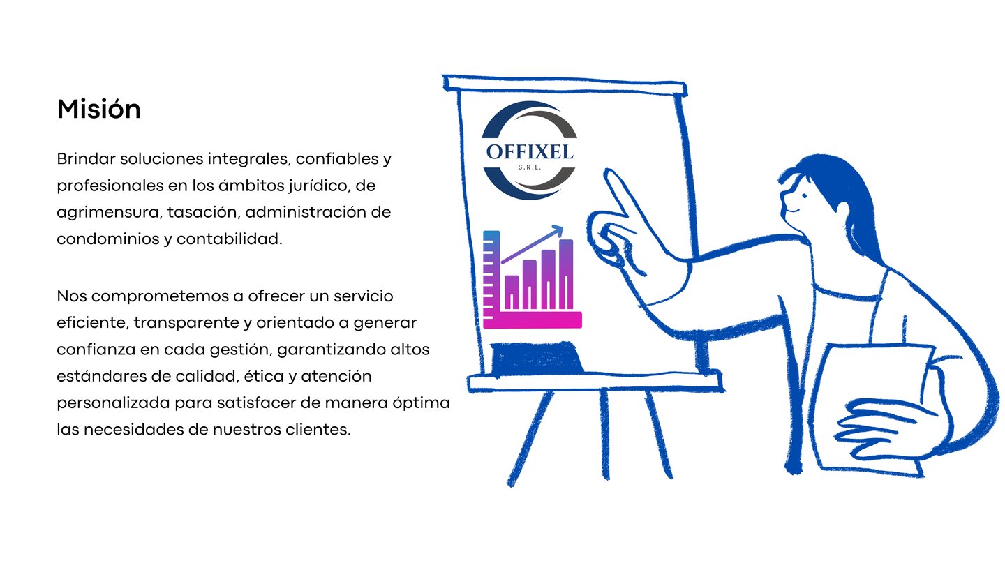 En Offixel, ofrecemos servicios jurídicos, agrimensura legal, tasación, administración de condominios y contabilidad, comprometidos con la excelencia y la satisfacción de nuestros clientes. Su confianza es nuestra prioridad en cada proyecto.
